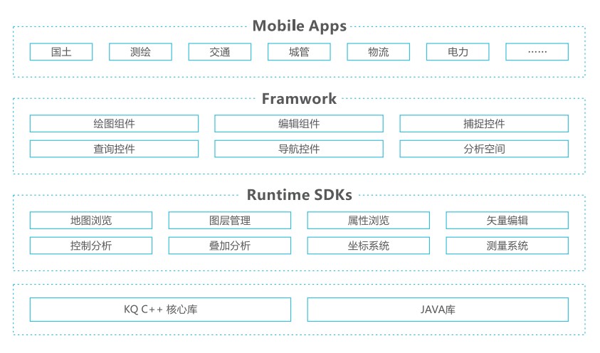 KQGIS Mobile可以分為Runtime SDKs(二次開發(fā)包)和Mobile Apps(移動應(yīng)用)。