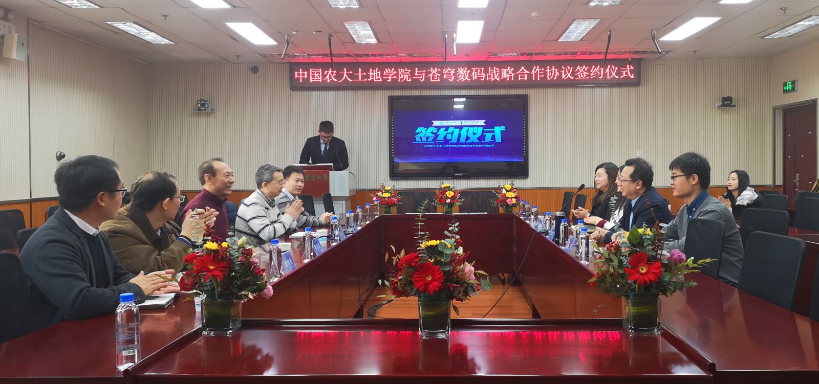 中國農業(yè)大學土地科學與技術學院書記劉尚民、副院長楊建宇、副院長曹兆紅、學院地理信息系主任黃健熙、高秉博教授、姚曉闖老師以及蒼穹數碼總經理趙曉方等出席簽約儀式。