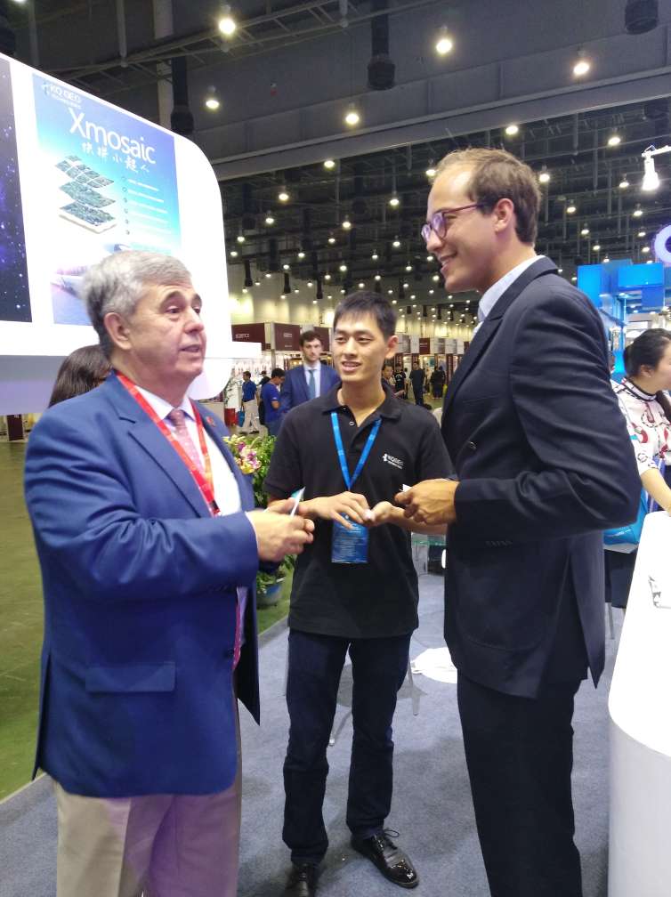 國(guó)家測(cè)繪局副局長(zhǎng)宋超智(右)參觀蒼穹數(shù)碼展臺(tái)
