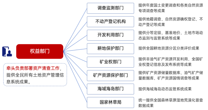 《工作方案》指出:本次資產(chǎn)清查基準時點為2023年12月31日。資產(chǎn)清查工作將按照“國家統(tǒng)一部署,省負總責,市縣抓落實”的模式開展,各?。▍^(qū)、市)也可結合資源稟賦、工作基礎、財力保障水平等,由省級統(tǒng)籌實施。資產(chǎn)清查工作由權益部門牽頭負責,調查監(jiān)測、不動產(chǎn)登記、開發(fā)利用、耕地保護、礦業(yè)權、礦產(chǎn)資源保護、海域海島和國家林草局等部門提供各類自然資源資產(chǎn)數(shù)據(jù)、系統(tǒng)成果。