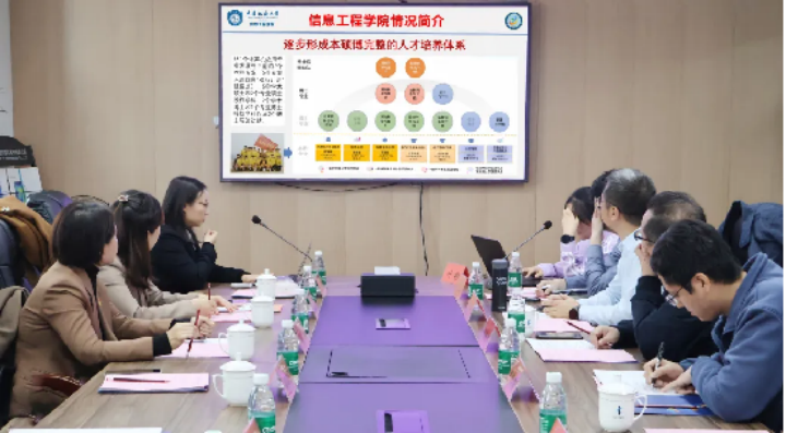 蒼穹數(shù)碼總經(jīng)理趙曉方對信息工程學院的到訪表示了熱烈歡迎。今年新入職公司的信息工程學院碩士畢業(yè)生葉彤介紹了公司發(fā)展歷程、業(yè)務板塊等情況,信息工程學院明冬萍副院長介紹了學院教學、科研及育人情況。雙方黨支部分別介紹了支部建設和活動開展情況。隨后,雙方就產(chǎn)學合作、協(xié)同育人、成果落地等方面進行了廣泛交流,為未來推進更深層次務實合作奠定了基礎(chǔ)。