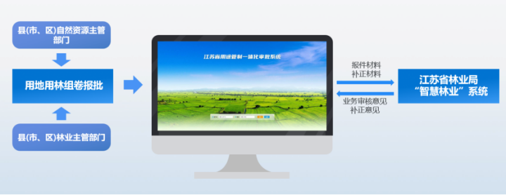 聚焦既往土地和林地管理分散、多窗口審批致使群眾來回奔波、耗時漫長的難題,對接打通江蘇省用途管制一體化審批系統(tǒng)與江蘇省林業(yè)局“智慧林業(yè)”系統(tǒng),實現(xiàn)報件材料、補正意見、業(yè)務(wù)審核意見等數(shù)據(jù)的雙向共享和業(yè)務(wù)聯(lián)動,面向省及省以下批準(zhǔn)農(nóng)用地轉(zhuǎn)用、城鄉(xiāng)建設(shè)用地增減掛鉤和審核林地許可事項,全面實行用地用林合并審批。以江蘇省用途管制一體化審批系統(tǒng)為主體,進行用地用林組卷報批,統(tǒng)一上傳用地用林審批材料,并將使用林地審核材料推送至“智慧林業(yè)”系統(tǒng),審核出具用林審查意見后,將審批結(jié)果通過數(shù)據(jù)交換接口返回至江蘇省用途管制一體化審批系統(tǒng),實現(xiàn)統(tǒng)一接件、統(tǒng)一補正、并聯(lián)審批、統(tǒng)一批文,為群眾和企業(yè)提供更為便捷、高效的服務(wù)體驗。