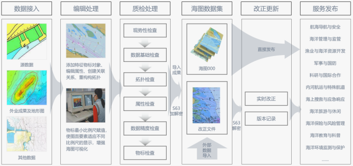 蒼穹國產(chǎn)化電子海圖解決方案包含海圖生產(chǎn)、管理、服務(wù)、應(yīng)用等關(guān)鍵模塊,涉及海圖數(shù)據(jù)接入、轉(zhuǎn)換、編輯、處理、質(zhì)檢、成果封裝、服務(wù)發(fā)布等環(huán)節(jié)。主要實(shí)現(xiàn):