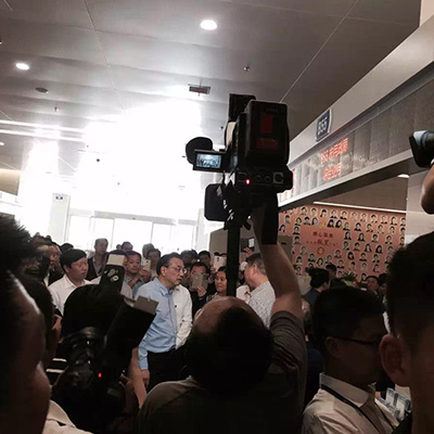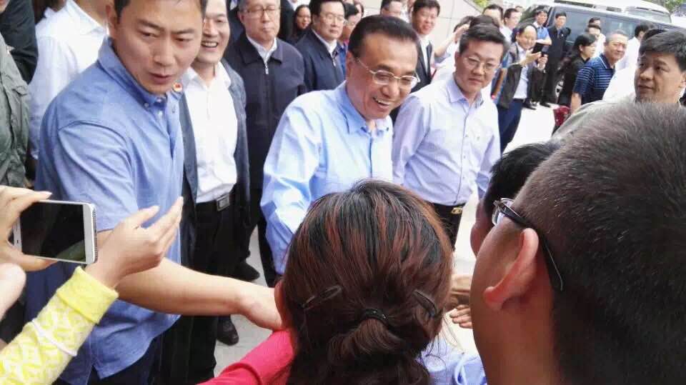 在省政府領(lǐng)導(dǎo)的陪同下,李克強(qiáng)總理臉上掛著親切的笑容走進(jìn)大廳,與工作人員握手,揮手示意。當(dāng)場蒼穹數(shù)碼的“攻城獅”、“程序猿”興奮地掏出手機(jī),拍攝了許多現(xiàn)場照片。