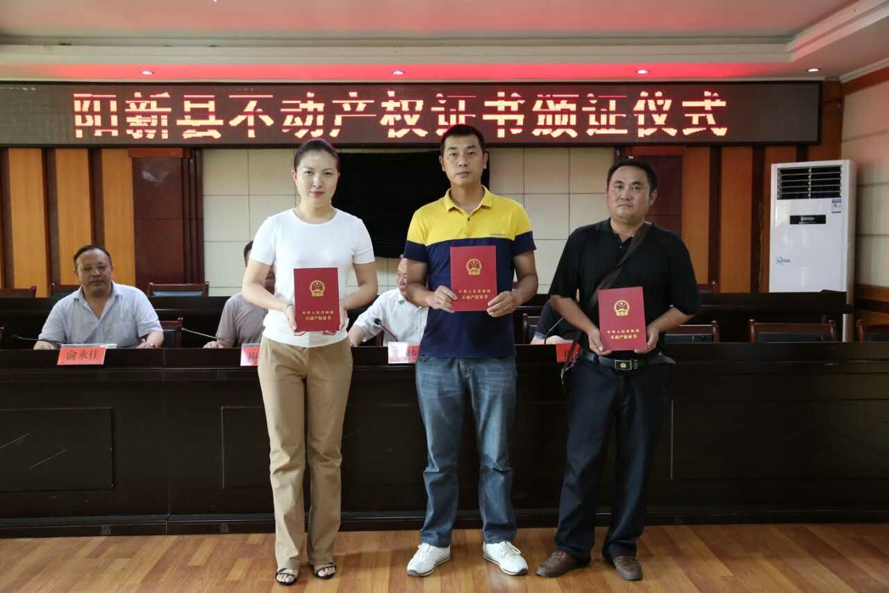 2016年6月30日上午,黃石市陽新縣不動(dòng)產(chǎn)權(quán)證書頒證儀式在陽新縣行政服務(wù)大廳隆重舉行。省、市相關(guān)部門領(lǐng)導(dǎo)、技術(shù)支撐單位蒼穹數(shù)碼代表等共同出席頒證儀式。群眾代表拿到了編號(hào)為“鄂(2016)陽新縣不動(dòng)產(chǎn)第0000001”的不動(dòng)產(chǎn)權(quán)證書。標(biāo)志著黃石市陽新縣結(jié)束了土地、房產(chǎn)、林地、草地等不動(dòng)產(chǎn)分散登記的歷史,宣告該市不動(dòng)產(chǎn)統(tǒng)一登記制度正式實(shí)施,開啟了不動(dòng)產(chǎn)統(tǒng)一登記的新征程。