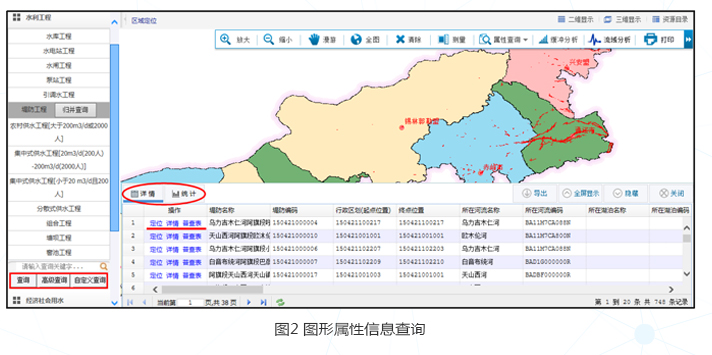 系統(tǒng)功能可實(shí)現(xiàn)對(duì)6+2專項(xiàng)普查成果進(jìn)行基本查詢、高級(jí)查詢、空間查詢等操作。