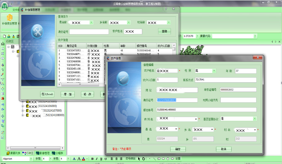 對公益林?jǐn)?shù)據(jù)進(jìn)行瀏覽、編輯、檢查、查詢共計等。